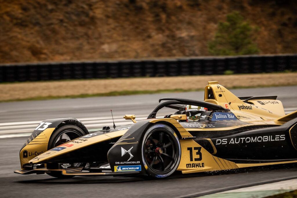 O emblemático DS E-TENSE FE21 da equipa DS TECHEETAH para o Campeonato FIA de Fórmula E 2021/22 foi hoje apresentado na sua mais recente evolução para a Temporada 8, no âmbito de um shakedown realizado no circuito de Alès, em França.