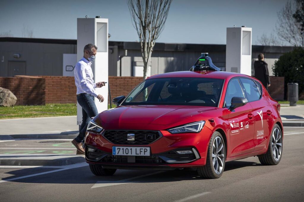 Um laboratório sobre rodas. DIANA é um projeto de inovação que nasceu para testar funções autónomas na condução, antecipando sistemas avançados de assistência à condução (ADAS). O veículo foi criado com base num SEAT Leon e está equipado com 5 sensores lidar, 5 radares, 6 câmaras, 12 ultrasons e 8 computadores que lhe dão uma visão de 360º. Estes elementos “geram uma grande quantidade de dados do meio à sua volta que são processados em milissegundos e enviados para um módulo onde está a localização”, explica Oriol Mas,  engenheiro de I+D na SEAT S.A.. E acrescenta: “Assim, o automóvel sabe onde está colocado, que obstáculos estão à sua volta e é capaz de decidir para onde tem de ir e de executar autonomamente as ações no volante, travões, acelerador e alteração da mudanças”.