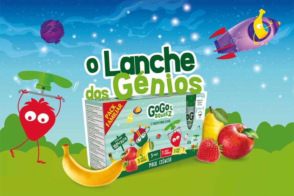 Entre experiências, depois das invenções ou até mesmo a caminho das aulas, GoGo squeeZ é o snack perfeito para acompanhar as crianças. Como não necessitam de ser conservadas no frio, as saquetas são também muito práticas de consumir e representam o equivalente a uma porção de fruta.