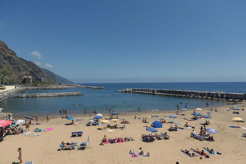 Inaugurada em 2004, esta praia artificial possui 100 metros de extensão de areal amarelo – importado de Marrocos -, e dois quebra-mares em talude como forma de proteção. As suas condições formam um microclima que torna aquela localização a mais solarenga de toda a ilha, o ano inteiro. É só estender a toalha e garantir que usa protetor solar.
