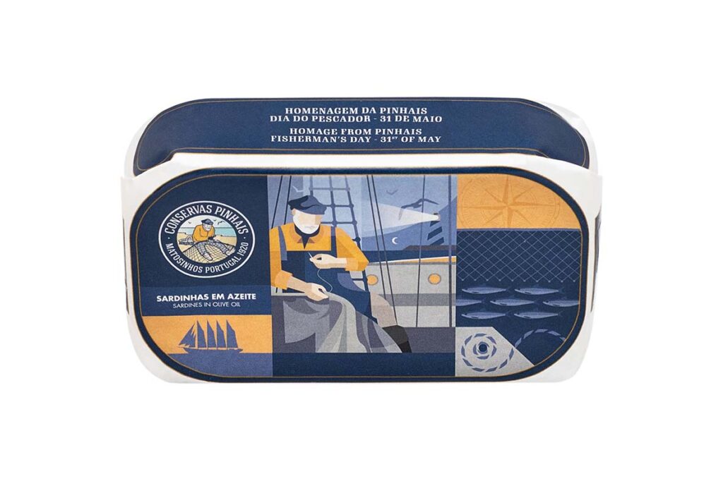 Fruto da sua relação histórica com o mar e como homenagem aos pescadores, imagem icónica das suas latas de conservas, a Pinhais, centenária conserveira de Matosinhos lança uma edição especial de conservas de sardinhas artesanais, em azeite, para assinalar o Dia Nacional do Pescador, cuja efeméride se celebra hoje. A ilustração é do designer gráfico Marcos Porto, que materializa a ideia através da litografia de uma edição limitada de 200 latas, à venda no Museu-Vivo “Conservas Pinhais Factory Tour” e loja online da Pinhais, pelo valor unitário de 5,40€.