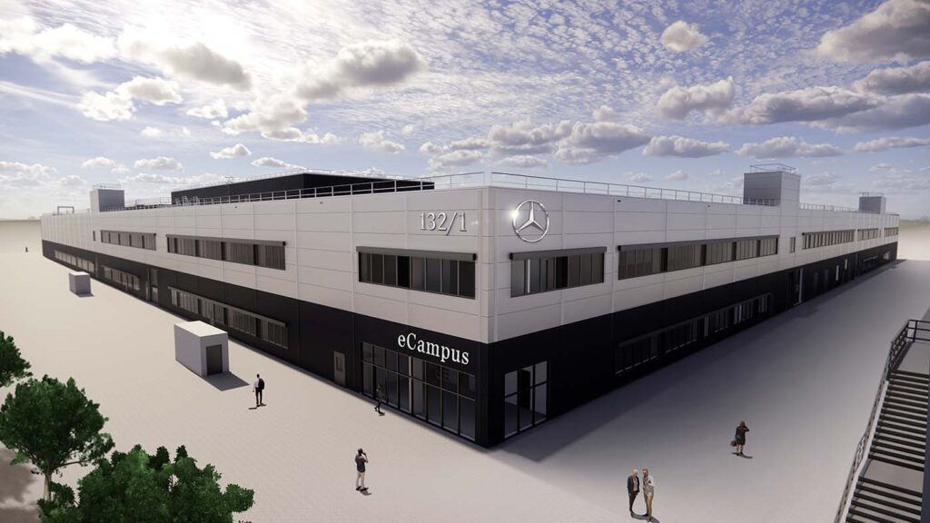 O novo Mercedes-Benz eCampus abrange uma área correspondente a vários campos de futebol (superior a 30.000 metros quadrados) e segue um conceito de construção abrangente que cumpre as normas de sustentabilidade da Mercedes-Benz. A conservação de recursos e a redução do consumo de energia constituem os principais pilares deste processo. Cerca de 60 % da área da cobertura do edifício está equipada com sistemas fotovoltaicos que alimentam a fábrica de produção com energia verde no âmbito do programa Mercedes-Benz para a expansão da utilização de energia renováveis. Toda a área de cobertura do edifício será constituída por materiais “verdes”. Tal como na Factory 56 em Sindelfingen, o betão reciclado feito de material obtido de demolições será utilizado na fachada. A utilização de bombas de calor reversíveis e acumuladores irá assegurar o fornecimento sustentável de calor e de ar condicionado à fábrica de produção. As torres de arrefecimento híbridas irão aumentar a eficiência do consumo de água. A Mercedes-Benz tem utilizado processos de produção neutros em emissões de CO2 em todas as suas fábricas de produção dispersas pelo mundo desde o início deste ano, e também compra eletricidade na Alemanha exclusivamente produzida a partir de fontes renováveis desde o início do ano. Adicionalmente, a empresa pretende aumentar em termos gerais a produção de energia renovável em todas as suas instalações de produção.