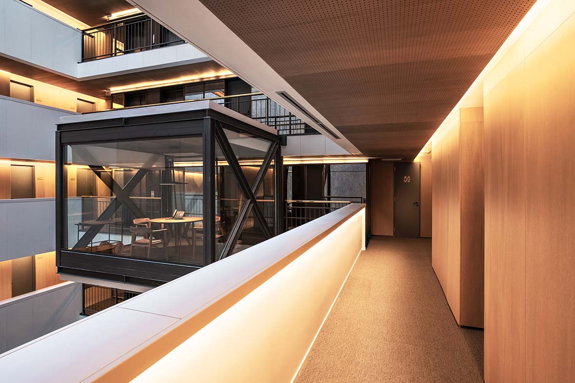 As soluções Portaro® da Vicaima, conjunto composto por porta, aro e acessórios numa peça única, revelam-se como a opção ideal para responder aos anseios de um espaço nobre, seguro e funcional. Todos os produtos Portaro® integrados nesta unidade hoteleira são certificados por laboratórios internacionais acreditados para a resistência ao fogo e isolamento acústico. As portas de entrada dos quartos integram o Portaro® Ei30AC40dB. Nos quartos comunicantes, foi aplicado o Portaro® Ei30AC41dB. Ambas as soluções revelam traços que se adaptam de forma harmoniosa às linhas sóbrias e distintas do hotel, garantindo o silêncio e conforto necessários a uma estadia de total tranquilidade.