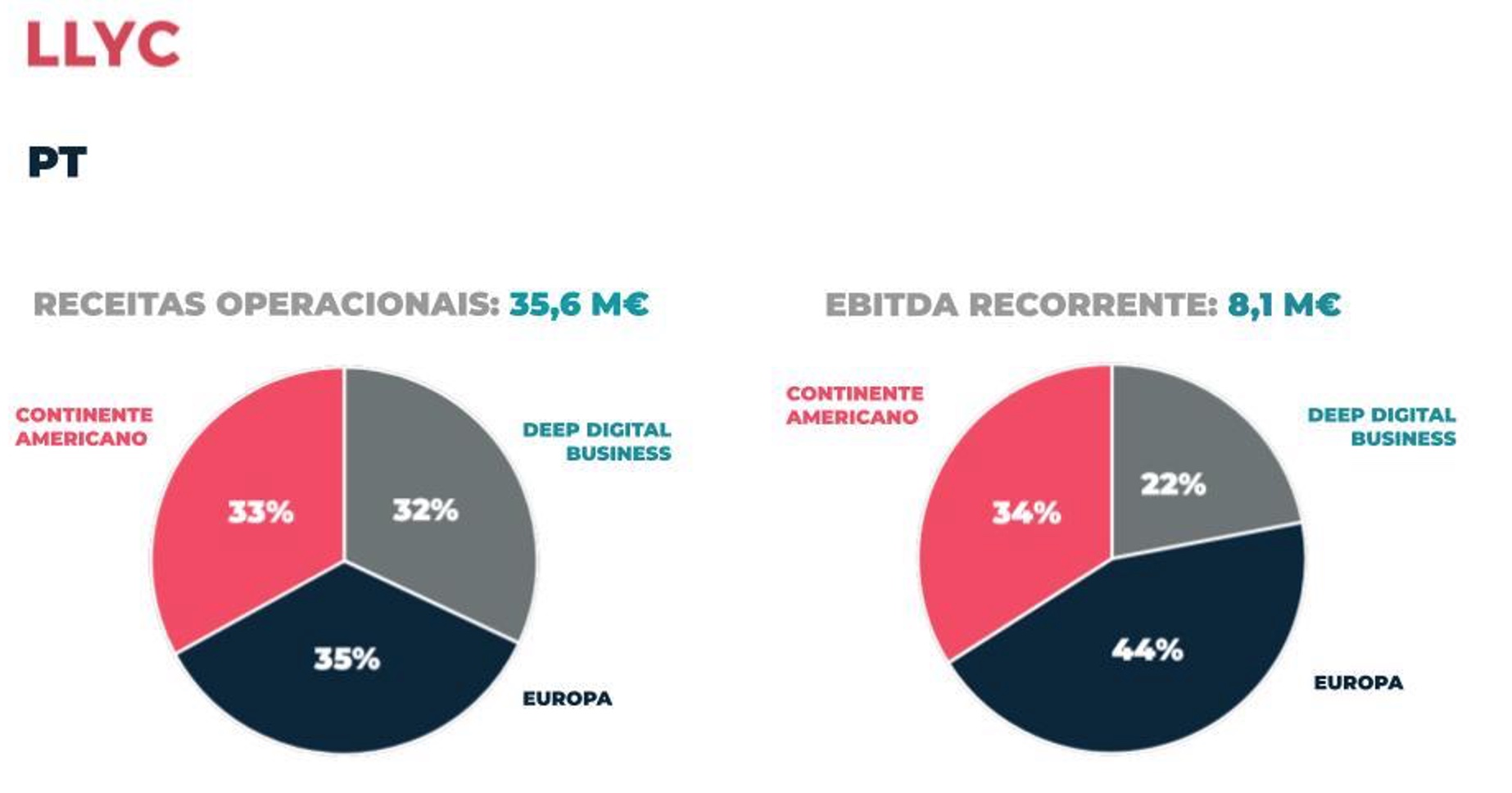 Os valores do primeiro semestre revelam uma distribuição equilibrada entre as três principais unidades de negócio. Até junho, a Europa contribuiu com 35% das receitas operacionais e com 44% do EBITDA e o continente americano, com 33% e 34%, respetivamente. O restante, 32% e 22%, teve origem no Deep Digital Business, a área que integra todas as linhas de serviço e soluções de inteligência artificial, transformação digital e inbound marketing da empresa.