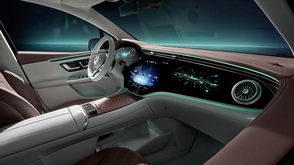 O EQE SUV oferece um espaço interior extremamente versátil com funcionalidades inovadoras vocacionadas para o conforto e comodidade. O conceito modular da cadeia cinemática resulta num desempenho sem precedentes em combinação com o sistema de tração traseira ou tração integral.