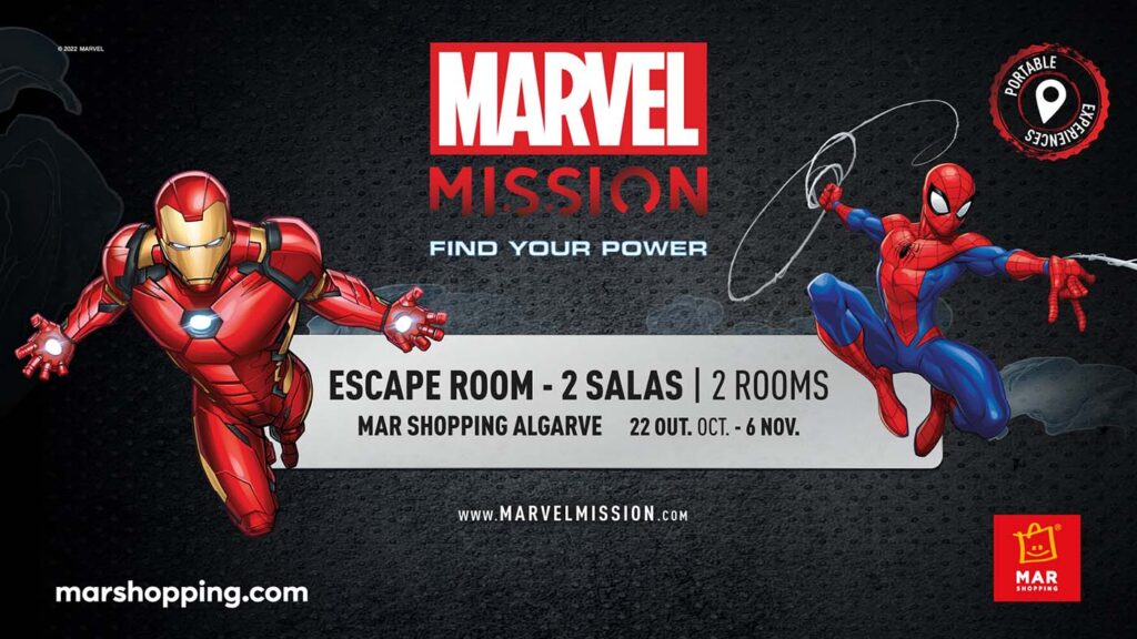 De 22 de outubro a 6 de novembro, o MAR Shopping Algarve recebe uma experiência emocionante em que os participantes terão de ter engenho e ser observadores para escapar da sala dentro do tempo estabelecido e ajudar o “Homem-Aranha e o Homem de Ferro a salvar o mundo”.