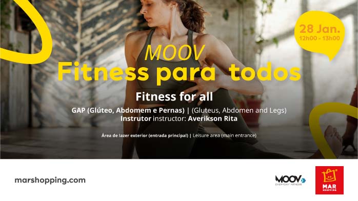 No dia 28 de janeiro, a comunidade do Algarve está convidada para uma pausa de uma hora para melhorar o core e reduzir o stress no programa “Fitness para Todos”. Num treino curto com muitos benefícios ao bem-estar físico e mental, o MAR Shopping Algarve junto com o ginásio MOOV Fitness oferece gratuitamente um treino de GAP (sigla para glúteos, abdominais e pernas), na área de lazer, exterior do Meeting Place, das 12h00 às 13h00.