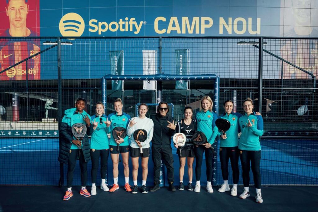 As jogadoras do FC Barcelona trocaram o futebol por uma raquete de padel num campo ao lado do Spotify Camp Nou