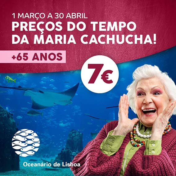 O mês de março traz a primavera, os dias maiores e as melhores promoções a fazerem lembrar os «tempos da Maria Cachucha»: todas as pessoas com mais de 65 anos vão ter a oportunidade de visitar o Oceanário de Lisboa por apenas 7€, todos os dias, e em qualquer horário, de 1 de março a 30 de abril.