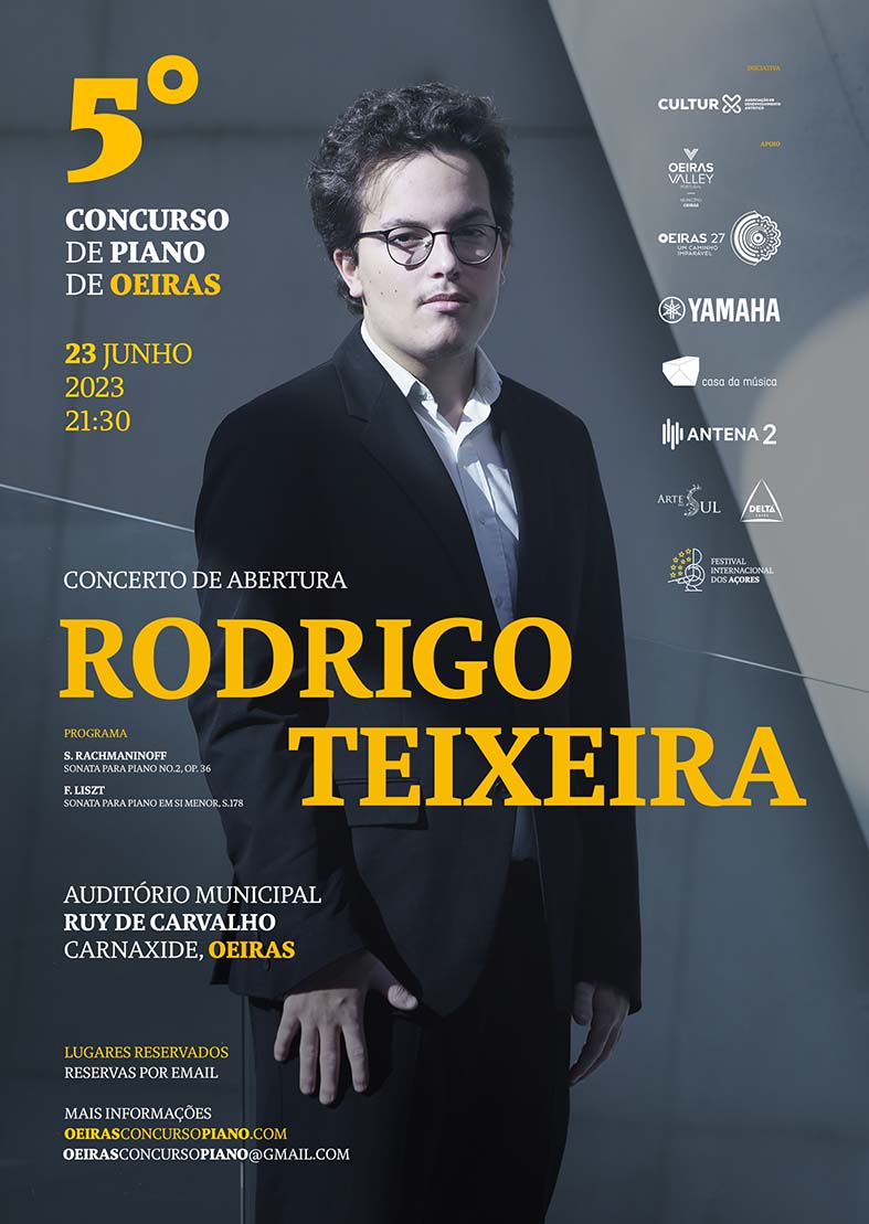 O habitual Concerto de Abertura, no dia 23 de Junho, às 21h30, acontece no Auditório Municipal Ruy de Carvalho e é um momento emblemático a cada edição. Este ano, o artista convidado é o maior talento português da sua geração, Rodrigo Teixeira, 19 anos, que é, também, o mais jovem vencedor da categoria mais avançada (até 32 anos), da última edição. Um Concerto de Abertura dedicado a Sergei Rachmaninoff, em ano da celebração dos 150 anos do seu nascimento, Rodrigo Teixeira apresenta-se com a segunda sonata do compositor, encerrando com a grande sonata de Franz Liszt – duas obras icónicas, que representam marcos da literatura do instrumento e para a carreira de qualquer pianista internacional. O Concerto de Abertura será gravado pela RDP/Antena 2.