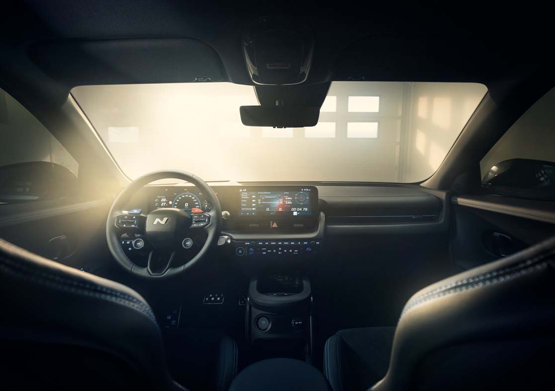 O novo tema de bandeira axadrezada – inspirado nos icónicos pixéis paramétricos do Hyunai IONIQ 5 – pode ser encontrado nos painéis das portas, nos pedais metálicos e no apoio para os pés, representando o espírito desportivo da gama N.