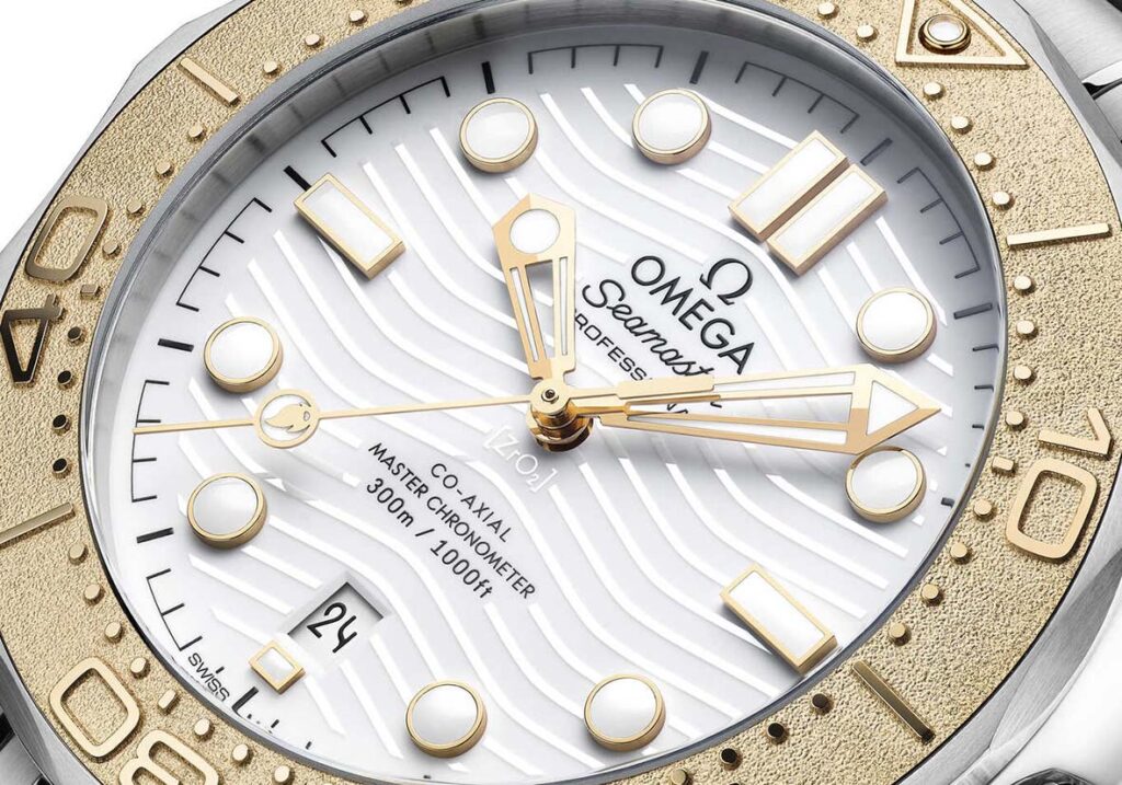 Por enquanto, o novo relógio de 42 mm estará disponível exclusivamente nas Boutiques OMEGA na cidade anfitriã, Paris. O modelo foi fabricado em aço e ouro Moonshine™ de 18K – a exclusiva liga de ouro amarelo da OMEGA, que oferece um tom mais claro e uma alta resistência ao esbatimento da cor. Como peça dedicada aos Jogos Olímpicos, o uso do ouro é uma inclusão essencial e um lembrete das muito cobiçadas medalhas pelas quais todos os atletas se esforçam. De forma mais destacada, o ouro é usado na luneta do relógio, que apresenta uma escala de mergulho estruturada a laser em relevo positivo e um único ponto de Super-LumiNova às 12 horas.