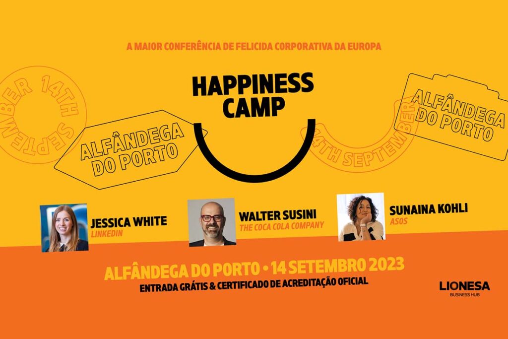 Promovido pelo Lionesa Business Hub, o Happiness Camp, a maior conferência dedicada à felicidade corporativa na Europa, apresenta a sua 2ª edição na Alfândega do Porto, no dia 14 de setembro de 2023. O evento é de acesso gratuito, mediante inscrição no site, e ambiciona reunir 6.000 participantes, entre empresas, profissionais, estudantes, turistas ou qualquer pessoa com interesse no tema.