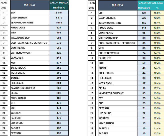 AS 25 MARCAS PORTUGUESAS COM MAIOR VALOR FINANCEIRO ASSOCIADO A ESG: