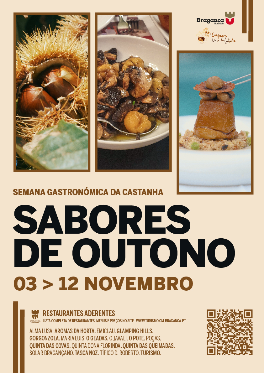 Bragança, o maior produtor nacional de castanha, promove, de 3 a 12 de novembro, a Semana Gastronómica da Castanha. Com o mote “Sabores de Outono”, a edição de 2023 reúne 17 restaurantes que, ao longo destes dias, apresentam o melhor da gastronomia típica da época com a castanha a assumir o papel principal.