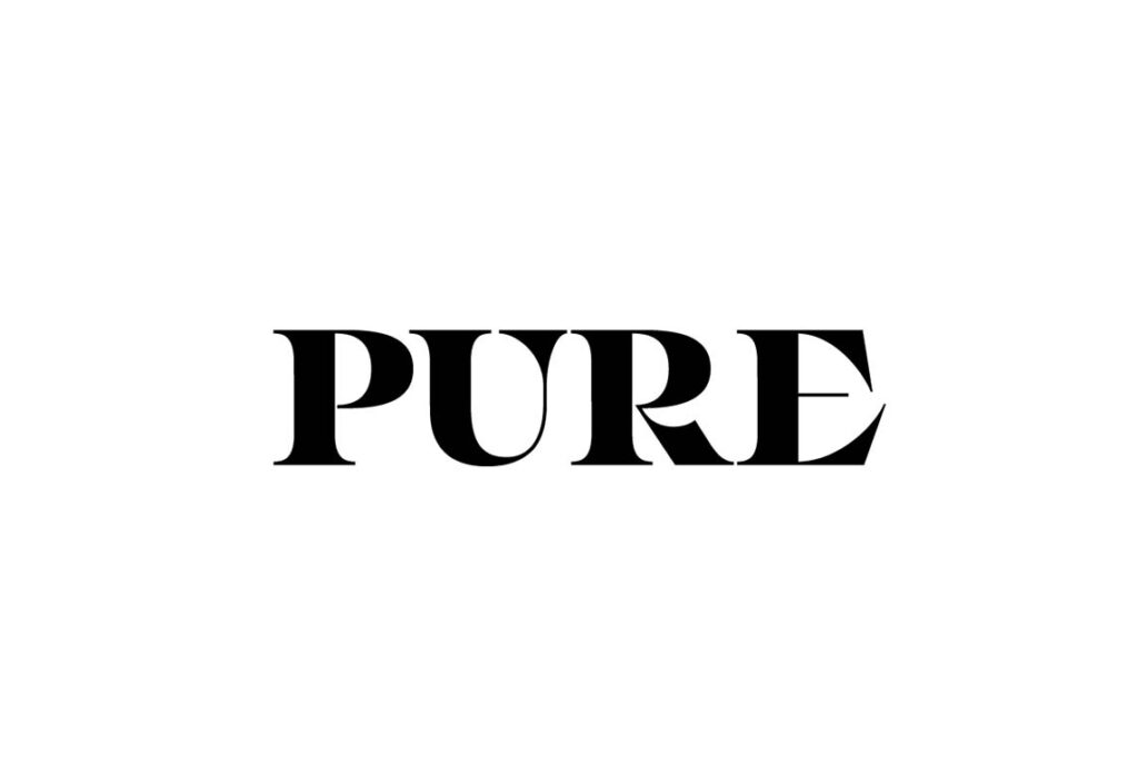 A wordmark Pure é uma expressão visual de sofisticação editorial, inspirada na riqueza estética encontrada nas páginas das grandes publicações no legado da máquina de escrever e dos antigos tipógrafos. Uma marca serifada, moderna, que evoca uma autenticidade e destaca a importância que a agência atribui à informação rigorosa e responsável. A escolha da paleta de cores preto e branco não apenas ressalta a simplicidade intemporal, mas também transmite elegância e versatilidade.