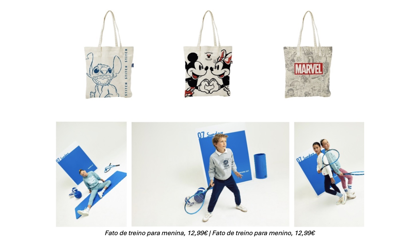 Como bónus, e no âmbito de uma campanha em parceria com a Disney e a Marvel, os clientes que adquirirem dois ou mais artigos destas duas marcas vão receber um tote bag, perfeito para qualquer ocasião. Esta oferta, limitada ao stock existente, está já disponível tanto em lojas físicas como online da MO.