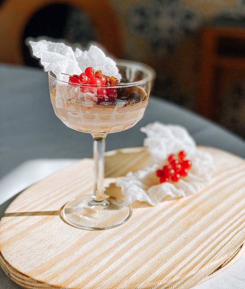 Para terminar a noite em beleza, será servido um leite creme de castanha com crocante de arroz e groselhas, acompanhado de água-pé.