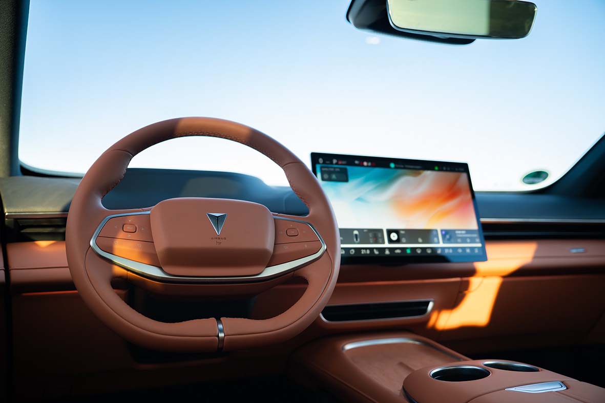 O habitáculo remete para o luxo náutico, combinando sofisticação e funcionalidade. O ecrã central de 15,6” ajustável, aliado ao Head-up Display de 12,3”, coloca a tecnologia ao serviço da condução. Bancos dianteiros elétricos, aquecidos e ventilados, iluminação ambiente dinâmica e teto panorâmico criam uma atmosfera premium. A bagageira traseira de 510 L, complementada por um frunk de 125 L, garante versatilidade.