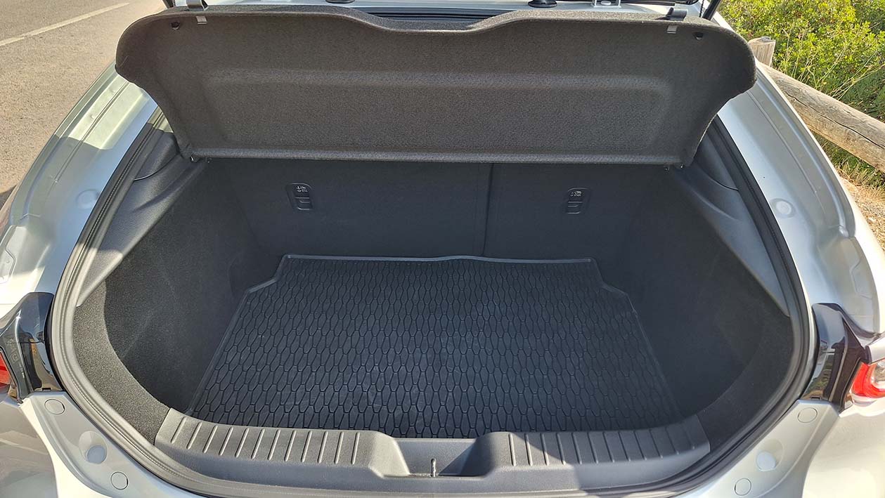Também ao nível da bagageira, o Mazda 3 HB mostra-se funcional para o dia a dia, oferecendo cerca de 351 litros de capacidade. Apesar do seu perfil desportivo e compacto, a capacidade disponível é bem aproveitada e suficiente para malas de viagem, compras ou equipamento de fim de semana. A abertura é ampla e o acesso é prático, facilitando a arrumação. Os bancos traseiros rebatíveis permitem ainda ampliar o espaço quando necessário, tornando este hatchback versátil e adaptado a diferentes rotinas.