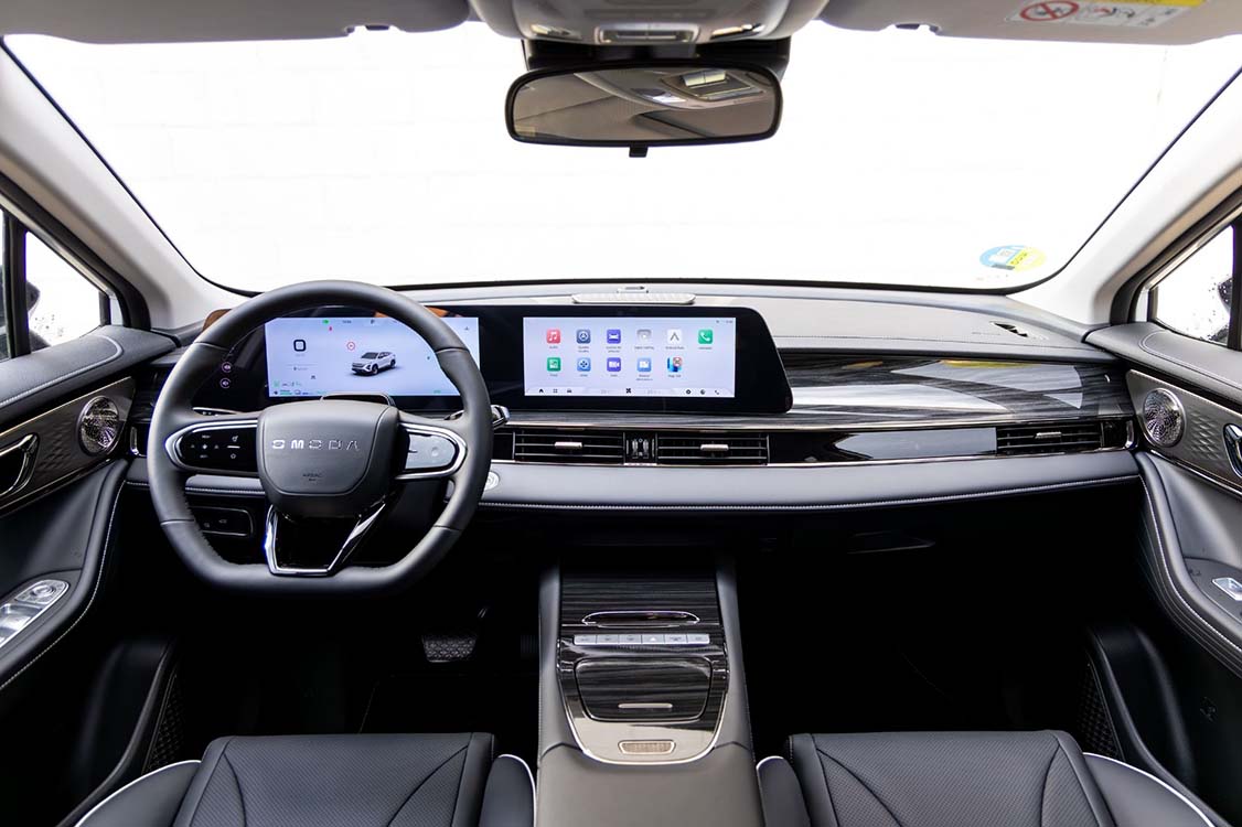 O habitáculo mantém o ambiente moderno e sofisticado característico da gama OMODA 5. O painel de bordo integra um ecrã duplo curvo com dois monitores LCD de 12,3 polegadas, enquanto o sistema multimédia inclui controlo por voz ativado por “Olá, OMODA”, compatibilidade com Apple CarPlay e Android Auto e arquitetura digital baseada no chip Qualcomm 8155.